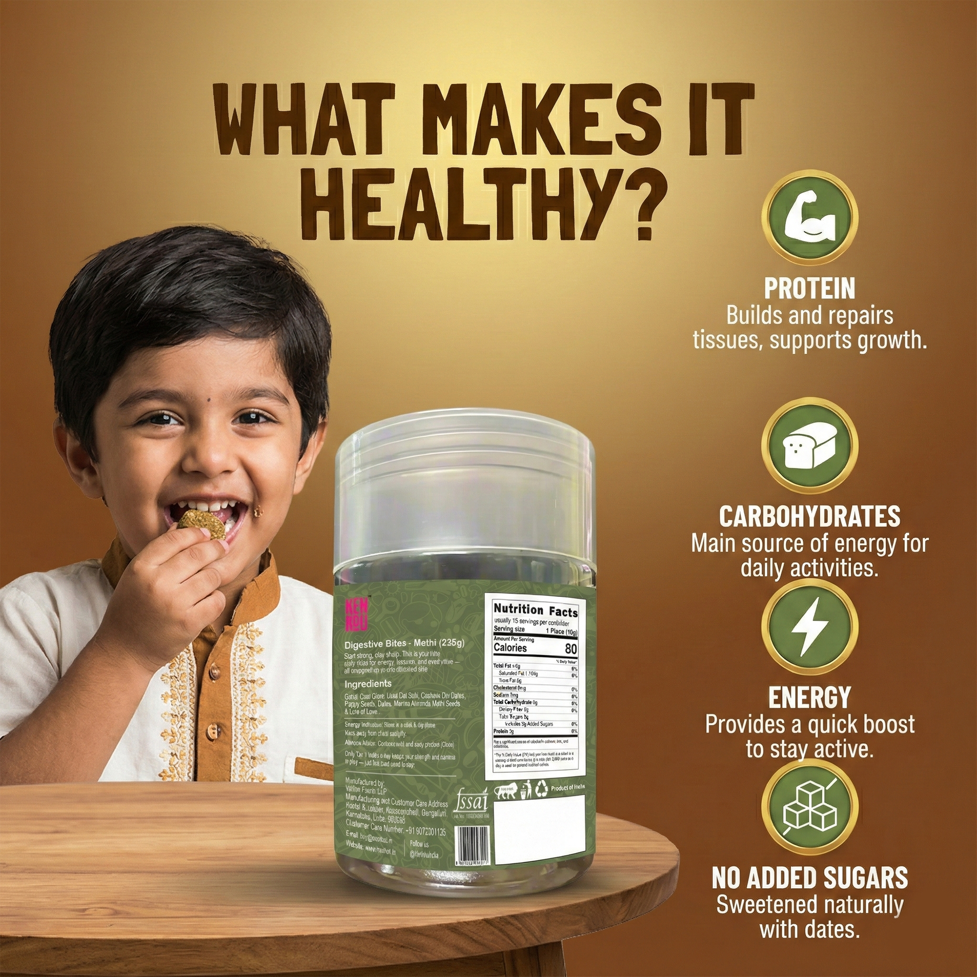 A modern take on a time-tested tradition. Kenkou’s Methi Digestive Bites are crafted to support gut health, balance hormones, and boost immunity—all through clean, natural ingredients. These gluten-free, refined sugar–free bites make ancient Indian wisdom a delicious, daily ritual.