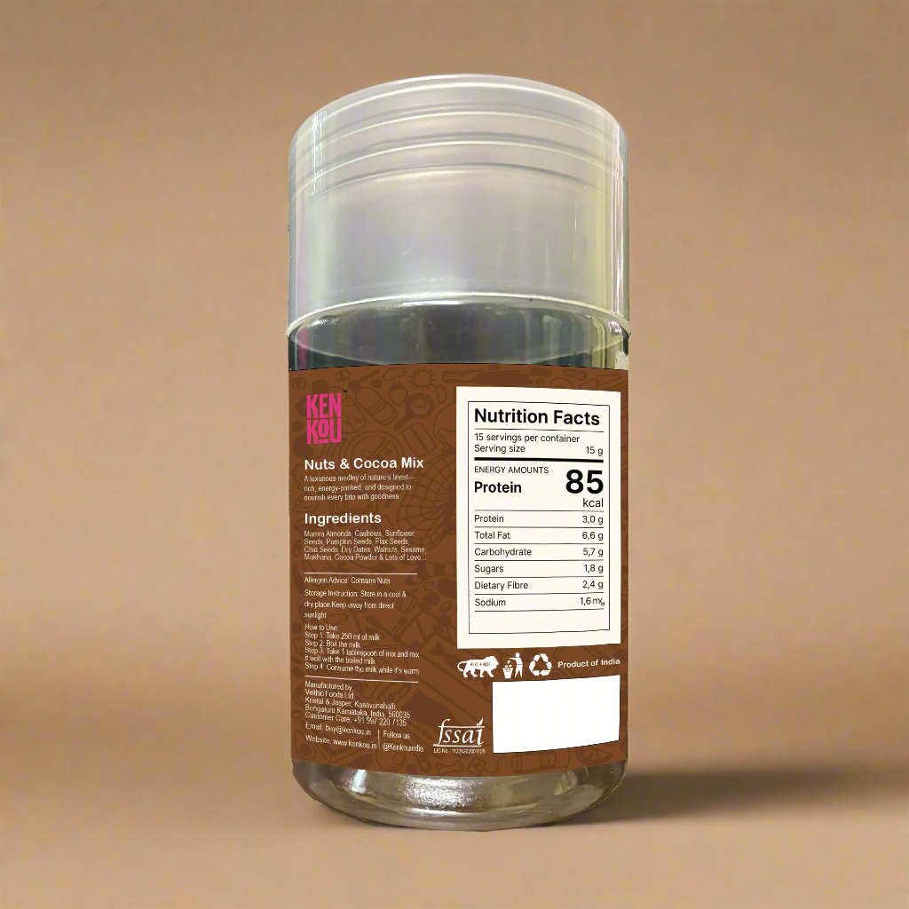 Kenkou’s Nuts & Cocoa Drink Mix is your guilt-free chocolate moment—layered with plant-powered nutrition, mood-boosting cocoa, and clean ingredients you can trust. It’s indulgence, reimagined for wellness.