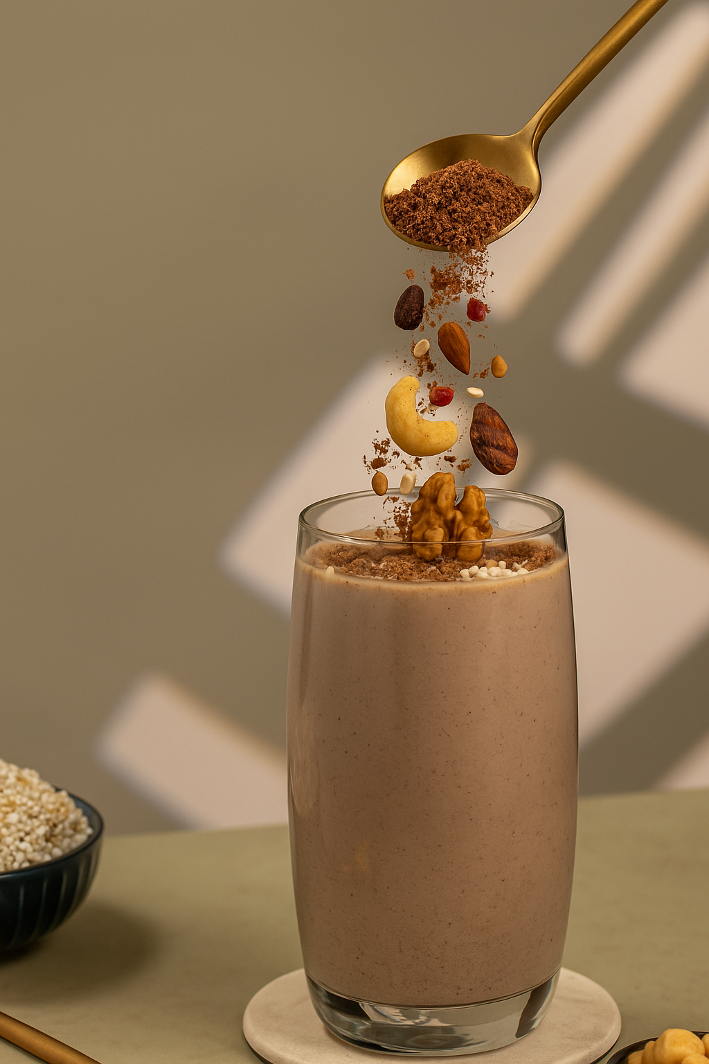 A rich, chocolatey blend of 11 nutrient-dense ingredients—each working behind the scenes to fuel your body, curb cravings, and nourish your day. No junk, no fillers—just wholesome goodness with a cocoa twist.