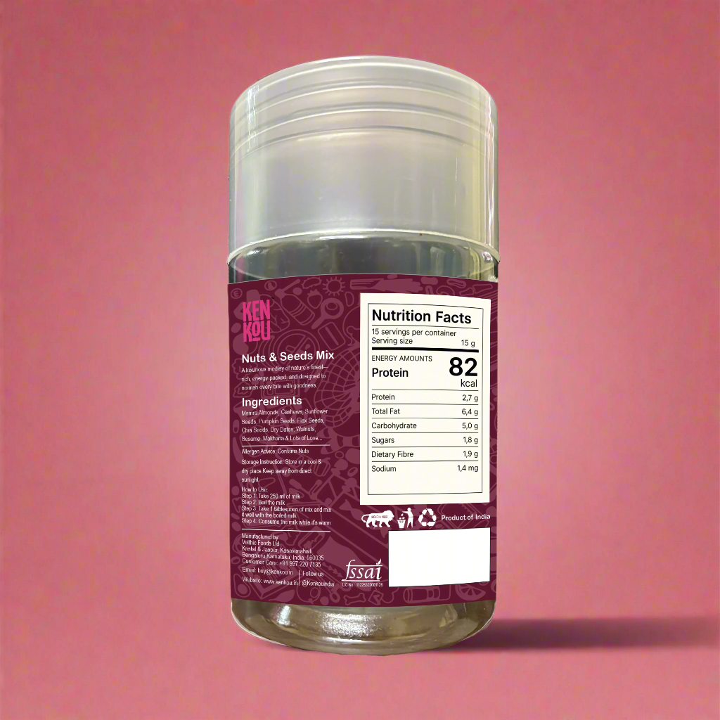 Kenkou’s Nuts & Seeds Drink Mix is your go-to daily fuel—rich in protein, fiber, and healthy fats. A powerhouse blend of 10 superfoods designed to nourish your body, boost metabolism, and keep you full—naturally and deliciously.