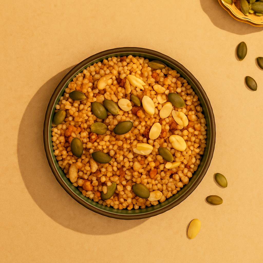 Quinoa, But Make It Namkeen! – Superfood meets super flavour in this crunchy mix of puffed quinoa, lentils, and seeds. Light, zingy, and surprisingly addictive – healthy snacking never tasted this good.